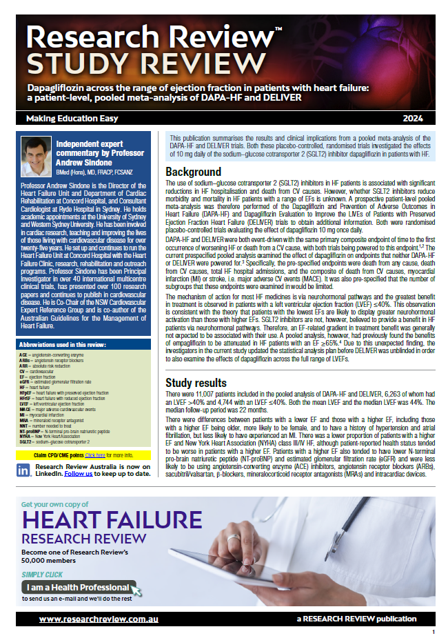 These trials were both placebo-controlled, randomised trials and independent commentary for the review has been provided by Professor Andrew Sindone, Director of the Heart Failure Unit and Department of Cardiac Rehabilitation at Concord Hospital.