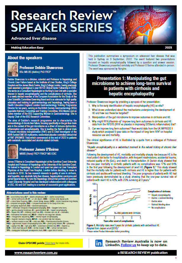 We’re delighted to add a summary of a symposium on advanced liver disease held in Sydney featuring Professor Debbie Shawcross and Professor James O’Beirne presenting on advanced liver disease.