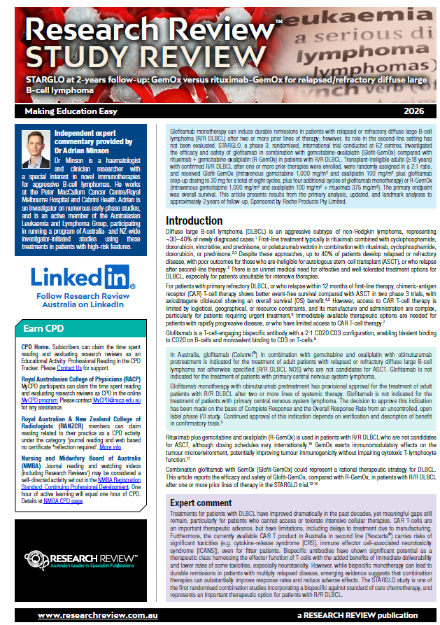 Study Review -STARGLO 2-years follow-up: Glofitamab-GemOx versus rituximab-GemOx for relapsed/refrac