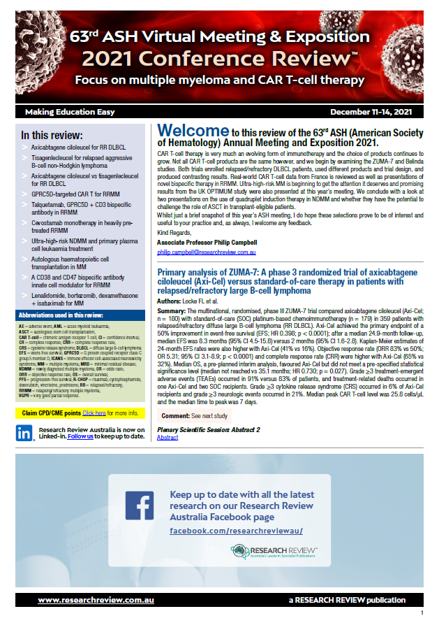 Axicabtagene ciloleucel for RR DLBCL
