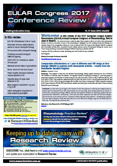 EULAR 2017 Conference Review, reviewed by Cl. A/Prof Rob Will