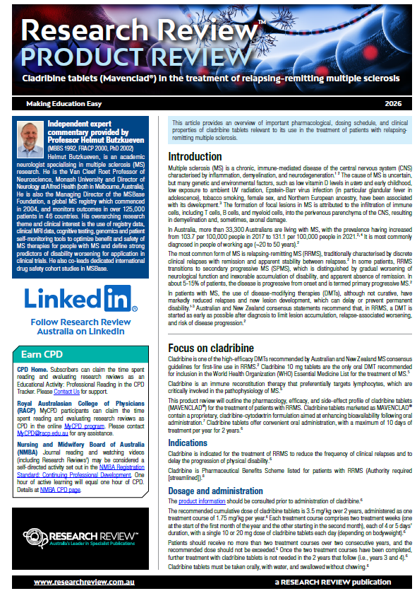 Guiding commentary has been provided by Professor Helmut Butzkueven, an academic neurologist specialising in multiple sclerosis research. He is the Van Cleef Roet Professor of Neuroscience, Monash University and Director of Neurology at Alfred Health (both in Melbourne, Australia). He is also the Managing Director of the MSBase Foundation, a global MS registry which commenced in 2004, and monitors outcomes in over 125,000 patients in 46 countries.