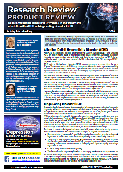 Product Review - Lisdexamfetamine dimesilate treatment of ADHD or binge eating disorder
