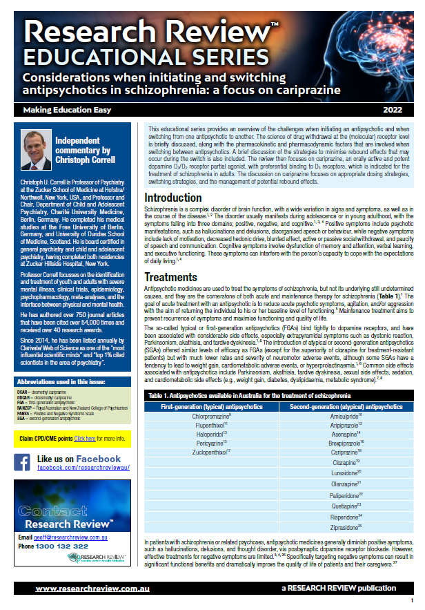 We're delighted to add our latest Educational Series titled: Considerations when initiating and switching antipsychotics in schizophrenia: a focus on cariprazine. This review summarises current treatments, pharmacodynamics of antipsychotic switching, switching schedules and focussing on the use of cariprazine.