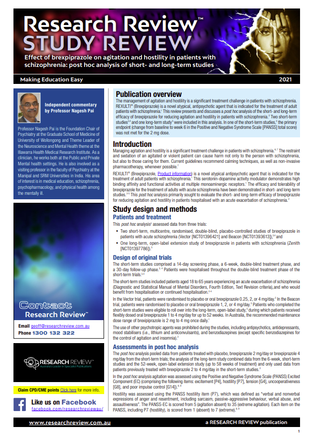 As part of our ongoing aim to bring you reports of interesting new studies, we have added a review of a study of the effect of brexpiprazole on agitation and hostility in patients with schizophrenia.