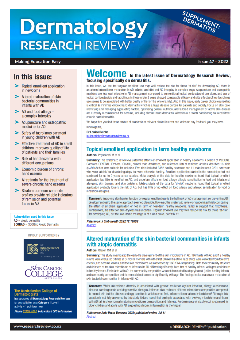 NZ Dermatology Research Review Issue 47 - Dermatitis Supplement