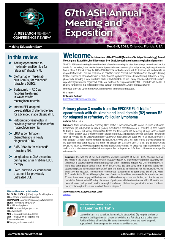 Conference Review: ASH 2025 Conference Review – Malignant Haematology Focus