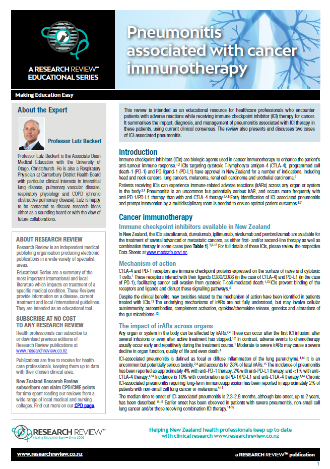Educational Series – Pneumonitis associated with cancer immunotherapy