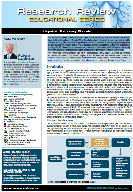 This Educational Series provides detailed insight into disease-background and disease-management issues in idiopathic pulmonary fibrosis (IPF), a devastating disorder for which no cure is currently available. However, exciting new treatments and possible combination schedules are emerging with the potential to slow disease progression and/or reduce mortality, thereby substantially shifting the management paradigm for IPF. Several such treatments are discussed in this review, which is intended for use by respiratory physicians and specialists. Expert commentary is provided by Professor Lutz Beckert.