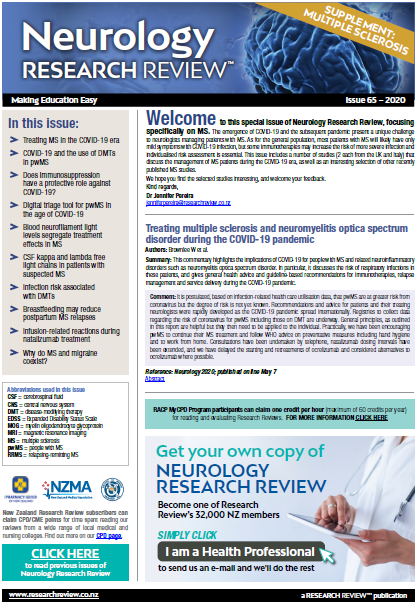 This Review features key medical articles from global neurology journals with commentary from Dr Barry Snow, Dr Jennifer Pereira and Dr John Mottershead. The Review covers topics such as neuromuscular diseases, peripheral neurology, neurodegenerative diseases, alzheimer's disease, epileptic drug therapy, migraine prophylaxis, and multiple sclerosis.